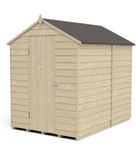 This garden shed helps to keep your garden clutter-free and offers a secure space for you to store garden equipment. With generous headroom, you can move around easier and store more. The shed's improved design features smaller sections which make it easy to handle and easy to assemble. The shed has been constructed using straight cut boards that overlap which aids water run-off and allows natural movement of the timber so it can adapt to the changing weather conditions. This garden shed is designed with strength and security in mind, with its main feature being the lack of windows to make sure your belongings are not on show. This garden shed comes with increased framing and an additional metal roof truss bracket for optimal strength. With more timber, these are the best overlap sheds we've ever made. The doors are braced with strong double “Z” framing and secure hidden hinges, fitted with a hasp and staple latch for increased security. The black sand felted roof, smooth-planed barge board and finial give this shed an attractive finish. This great value garden shed comes with all fixtures, fittings and instructions which are easy to follow. Forest Garden ...