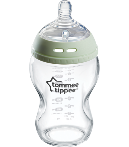 Tommee Tippee Natural Start Glass Baby Bottle with Silicone Teat 1 un. 250mL Slow Flow