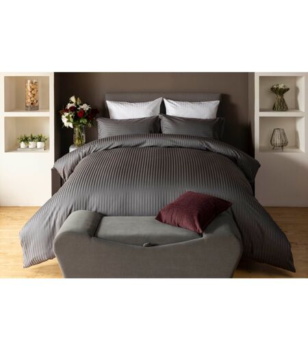 Belledorm 7 Piece Hotel Suite Satin Stripe Bedding Set Charcoal Super King