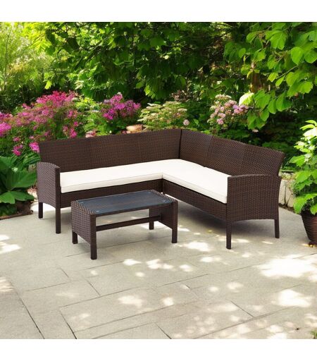 This L-shaped sofa set is the perfect setting for any type of garden. The set comes with a 2-seater bench and a 3-seater bench to form the L shape. It also has a coffee table. It is the perfect setting for your family and friends to enjoy. Made from the highest quality polyethylene wicker around galvanized steel frames it is durable, strong, and effortlessly classic. Royalcraft Colour (Frame): Brown ...