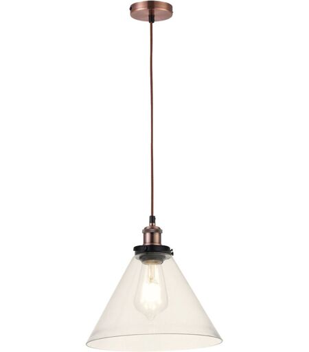 Eleg antly illuminate your home with this single-light pendant. This cone-shaped fixture , crafted from sleek metal and paired with a graceful glass shade, casts a warm and inviting glow, perfect for creating a cozy ambiance. Loxton Lighting Base Finish: Copper, Shade Colour: Clear ...