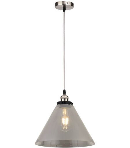 Eleg antly illuminate your home with this single-light pendant. This cone-shaped fixture , crafted from sleek metal and paired with a graceful glass shade, casts a warm and inviting glow, perfect for creating a cozy ambiance. Loxton Lighting Base Finish: Chrome, Shade Colour: Smoked ...
