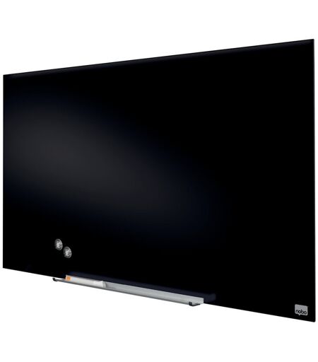 The widescreen format provides an expansive writing surface. This glass board has a sleek and stylish appearance with an adjustable pen tray. InvisaMount system makes installation easy and fixings are neatly concealed behind the board. Includes a high-quality aluminum removable pen tray. It delivers ultra-erasability with the highest resistance to ink stains, pen marks, scratches, and dents. Nobo Size: 71.1cm H x 126cm L, Surface Colour: Black ...