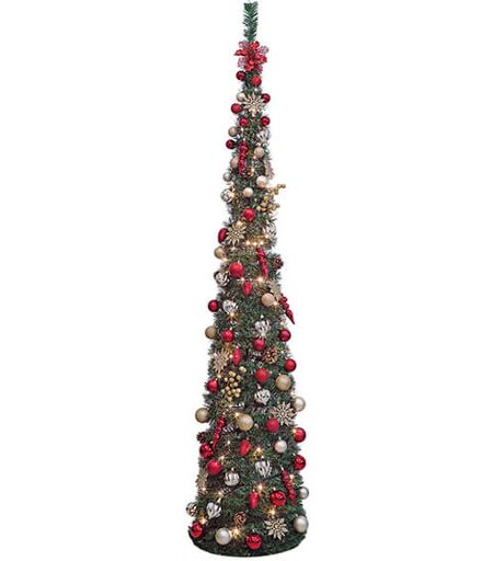 Portland Fir 7ft Pop up Christmas Tree with 80 Lights & 80 Red & Gold Decorations