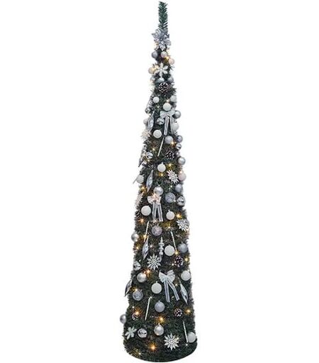 Portland Fir 7ft Pop up Christmas Tree with 80 Lights & 80 White & Silver Decorations