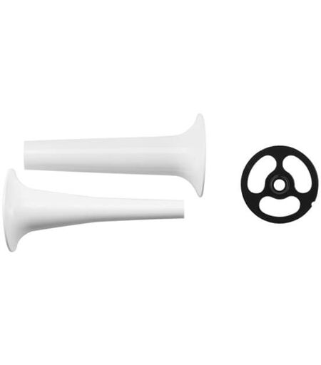 Impress your guests and loved ones with authentic and deliciously tasty homemade sausages using this KitchenAid Sausage Stuffer set. Designed to be used in combination with the 5KSMFGA KitchenAid Food Grinder (available to purchase separately), this sausage stuffer set helps you to create wholesome sausages alongside herbs, spices and flavour combinations you desire. This set includes a choice of two tubes: 1 x 9.5mm stuffing tube and 19mm stuffing tube, perfect for creating small breakfast sausage to large Italian sausages. The KitchenAid Sausage Stuffer is dishwasher safe. Supplied with a KitchenAid 2 Year Guarantee. ...