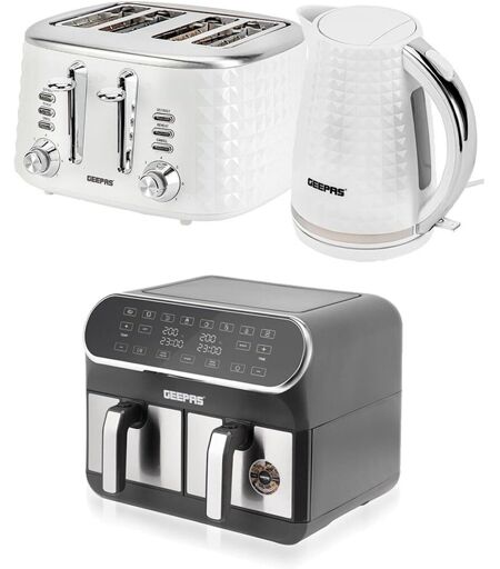 GEEPAS 8L Dual Basket Air Fryer, 1.7L Kettle & 4 Slice Toaster Appliances Set White 4 - Slice