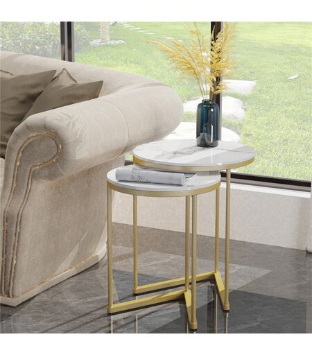 Canora Grey 2 Piece Marble Nest Of Coffee Tables Round Top End Table Sofa Side Table Set White 55cm H X 45cm W X 114.3cm D