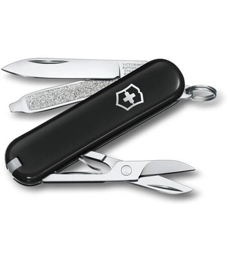 For over a century, the Victorinox Swiss Army Knife Classic SD has been a symbol of sleek functionality. This Dark Illusion version brings it up to date. It’s the simplest lifelong commitment you'll ever make. Tools: Blade, small / Keyring / Nail file / Scissors / Screwdriver 2.5mm / Toothpick / Tweezers Dimensions: 0.9(H) x 5.8(L) x 1.8(W) cm. Weight: 0.021kg. The Victorinox Swiss Army Knife Classic SD Dark Illusion is covered by a Victorinox lifetime warranty. Knives are not for sale to persons under the age of 18. - all knives and bladed products are delivered by Age Verified Delivery (AVD). The carrier may request proof of age in order to deliver your parcel. If proof of age is not available, or the recipient is underage, the carrier will refuse to deliver. ...