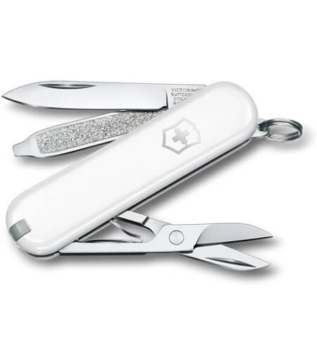 For over a century, the Victorinox Swiss Army Knife Classic SD has been a symbol of sleek functionality. This Falling Snow version brings it up to date. It’s the simplest lifelong commitment you'll ever make. Tools: Blade, small / Keyring / Nail file / Scissors / Screwdriver 2.5mm / Toothpick / Tweezers Dimensions: 0.9(H) x 5.8(L) x 1.8(W) cm. Weight: 0.021kg. The Victorinox Swiss Army Knife Classic SD Falling Snow is covered by a Victorinox lifetime warranty. Knives are not for sale to persons under the age of 18. - all knives and bladed products are delivered by Age Verified Delivery (AVD). The carrier may request proof of age in order to deliver your parcel. If proof of age is not available, or the recipient is underage, the carrier will refuse to deliver. ...