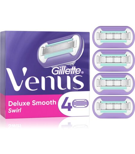 Gillette Venus Deluxe Smooth Swirl, 4 pc, Depilation and Epilation for Women, Not getting the same precision results with your shaver as before? It’s time to change the blade. The Gillette Venus Deluxe Smooth Swirl replacement blades ensure the same smooth shave as with a new shaver. Characteristics: easily interchangeable shaving heads blades ensure a smooth shave integrated moisture strips release caring substances How to use: Use to shave. Replace the shaving head with a new one as soon as it wears out or the blades go blunt. ...